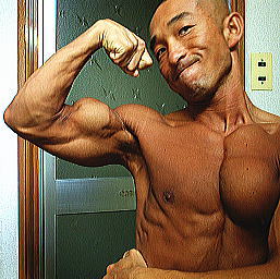 ※ボディービルダー画像 3枚目(2段目左)・6枚目(3段目右) の画像を クリック すると 拡大ボディビル画像 になります ラットスプレット・バックポーズ(5枚目、3段目左のボディビル画像)で丸みを帯びた背中のポーズになるように頑張れ!と同じ ユベオツボディビル同好会の盛英信氏(2007年 北海道ボディビル選手権大会 優勝)から御指摘を受けていましたので 意識してみました♪ デッドリフト や 盛氏 オススメの ワンハンドロー(ダンベルを片手で引く背中の筋トレ)も積極的に取り入れたので 少しは マシ になったというか、丸みを帯びたみたいです??(いかがでしょうか?皆様?) 腹筋 も含め 筋肉の溝というか ムキムキ度(専門用語でカットと言います)は中々良い感じみたいです! 7枚目・脚の画像 は 北海道ボディビル選手権大会1ヶ月前 に太陽の自然光を利用して撮影、8枚目・脚の画像は2日前に日焼けの照明を利用して撮影しています(※8枚目の脚画像は色彩のみ若干補正しています)。 |