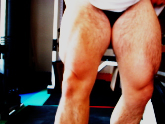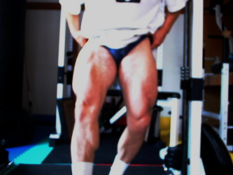 脚のポーズです(2枚)、一応大腿囲はこの時で65センチ強であったと記憶しています↓
