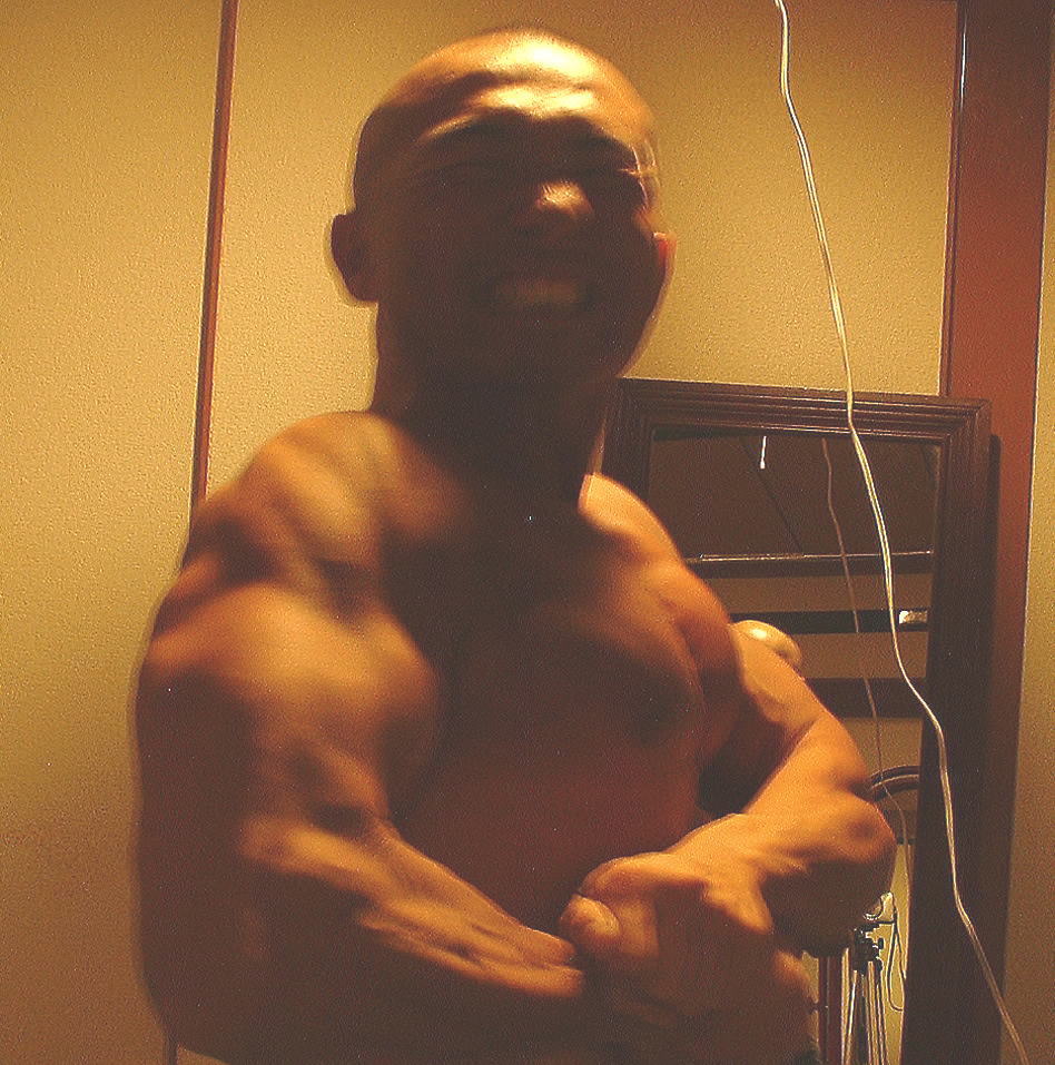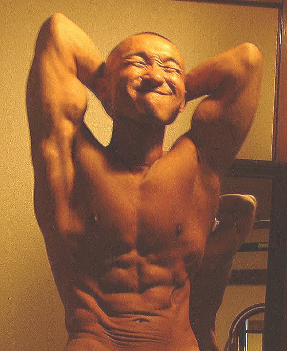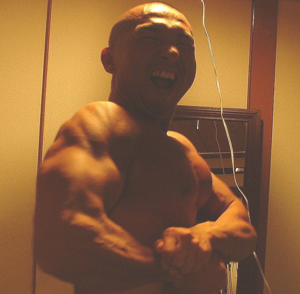 今回も前回同様、出張帰りで、筋肉にオイル塗ったりとか パンプアップ(筋肉を運動で充血させて良い状態にする事)も全くしないで撮影してみました。ただし、私も人の子! 少しは良く魅せたいので、照明はリアルな裸電球を使いました。その代わり光源(光も明るさ)が弱かった為、画質が荒れたので、若干 シャープネス(繊細め)修正を施しております。 悪い状態であえて撮影しておいて、最高の状態で撮影するのは “後のお楽しみ♪” にしようかと?…思っております。 7月頃の写真撮影が今から楽しみです♪ なお仕上がり(減量・調整状態)は 今で6割強(60%)位 まで進みました♪ 最初1回目(2009年5月撮影)より2週間経過しました。少しは減量も進んだみたいです。 食事は少し減らしています。ちょいとだけ大変です・・・♪ これから まだ本格的に絞れる(減量できる)かなぁ〜と思っております♪ 2009年度(平成21年度)北海道ボディビル選手権大会には出たいと思っているのですが、前向きのポーズ(フロントポーズ)は比較的良いのですが、後向きのポーズ(バックポーズ)が今一つ冴えない感じがしており大きな課題です。5月中旬から デッドリフト(背筋を鍛える種目) を取り入れて 厚み と 筋肉の溝(カット) を造り上げて行こうかと思っております。