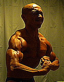 2010年(平成22年)北海道ボディビル選手権大会 数日前に撮影してみた時の画像です。 照明をリアルに写る裸電球を頭上に設置し、男らしい “バビッ” とした画像を撮れるという ニコン のデジタルカメラにして撮影に望みました。 僕はカメラや照明にはこだわる方で、特にボディビル画像に関しては妥協はできません。このボディビル画像も試行錯誤で撮影方法や編集方法を工夫して苦労しました。その事に関して少しお話をさせて頂きます。 まず照明は裸電球を頭上に2個設置しました。裸電球の光源は、蛍光灯のような広がりと柔らかさは出ませんが、しっかりとした凹凸感や陰影がしっかりと浮かびあがってきます。この裸電球の光源の場合は、マスキュラーポーズ や サイドチェストポーズ など筋肉を収縮させて 深く入った溝(カット) をアピールするポーズには適しているようです。 その代わり反対に、ラットスプレットポーズ などの筋肉を拡張させるポーズには、裸電球は広がりと柔らかさに欠けるので不向きなようです。従いまして、ラットスプレットポーズの際は、立ち位置を変えたり、照明を更に付け加えたりして撮影する場合もあります。 しかし、どうしても裸電球には広がりや柔らかさが無く、そのスポット(光源)があたった部分しか明るさを出せない為、デジタルカメラでも感度が高い 新しいタイプのもので無いと美しく撮影できません。更には最新のカメラで撮影できたにせよ、光源が暗い影響でどうしても “ボヤけた感じ” で写し出されてしまいます。 これに関しては、パソコンの画像編集ソフトで補正作業を施してあげなければなりません。 …とまあ、『照明(裸電球)』 『質の良いデジカメ』 『画像編集技術』 …この3点をしっかりさせて、ようやっと 世に配信できる ボディビル画像 になるのであります。 |